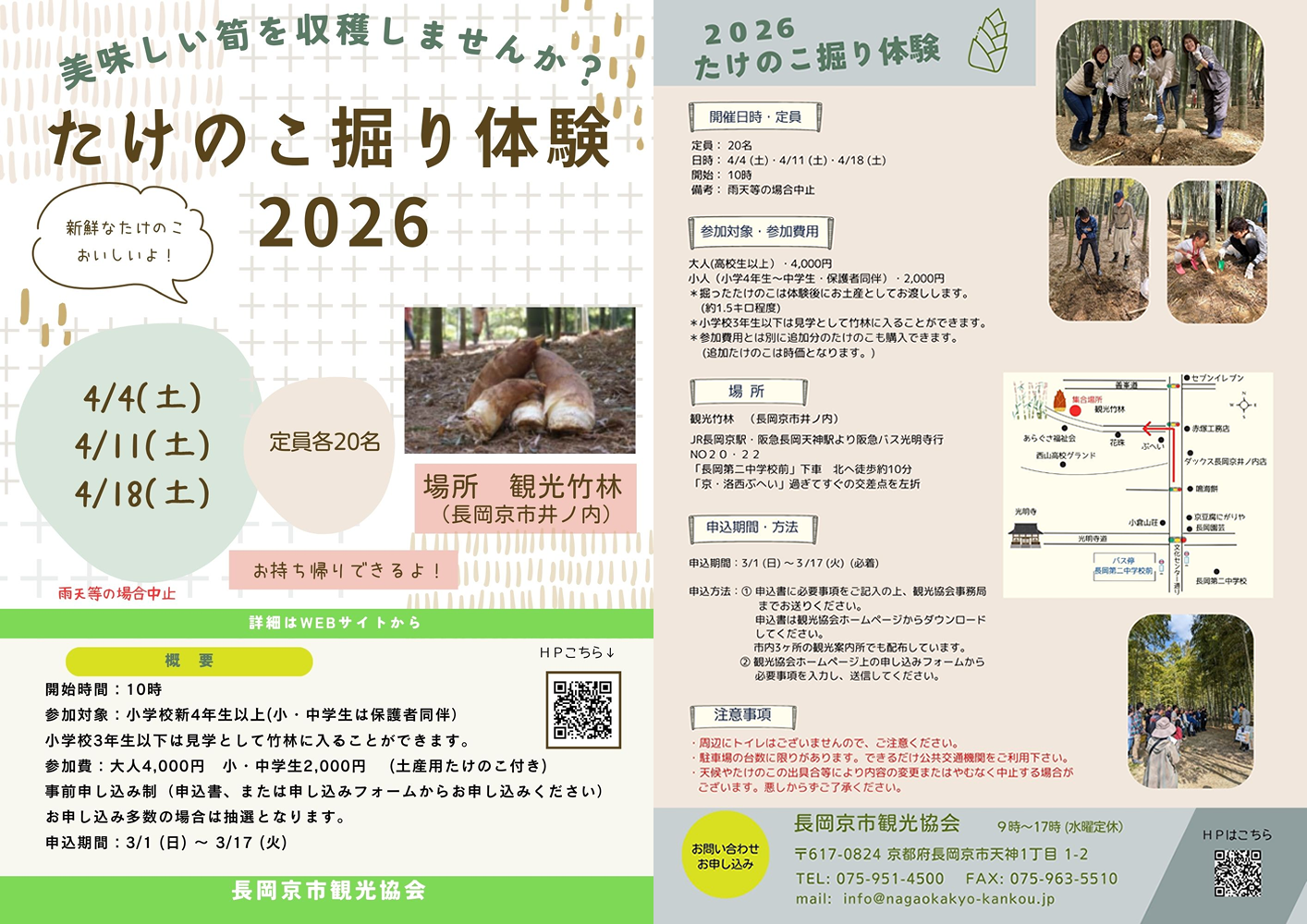 たけのこ掘り体験2026 受付期間:3/1(日) 〜 3/17(火)